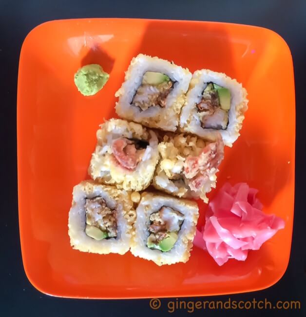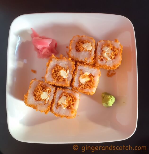 Cheesy Chips Oman maki – I had no idea what to expect of these with a name like “chips oman.” I’ve never heard of the term before. But was told that this maki was popular with children. Well both my kids did like this sushi roll made with cream cheese but I’m not a cream cheese fan (except in bagels) so the dish didn’t rank up there with me.