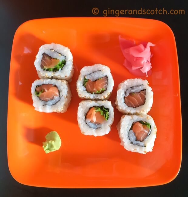 Salmon maki – this is one of Wee Scotch’s favorite. He nearly devoured all of it by himself before I reminded him to share one with me and his sister.